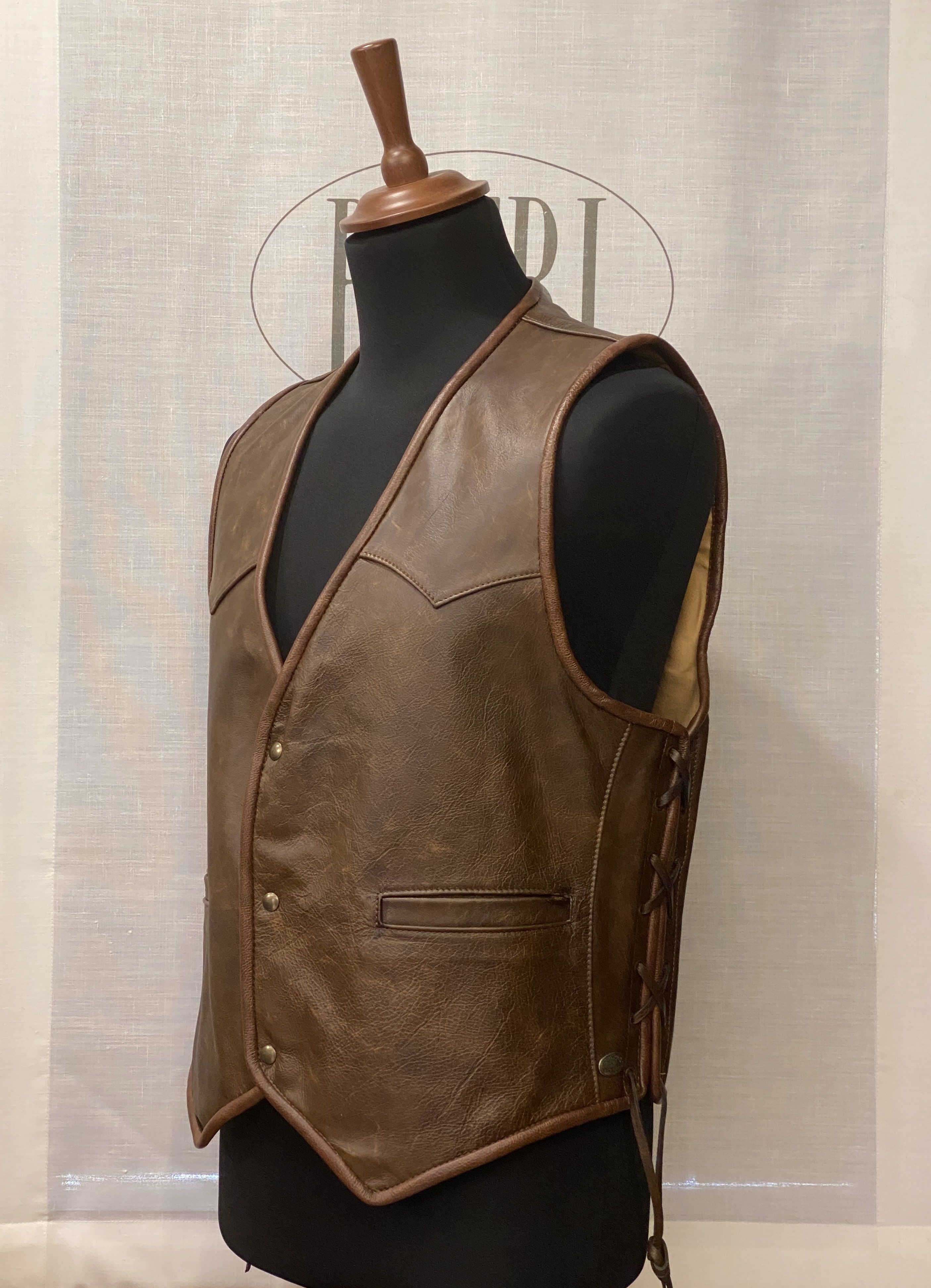 Gilet uomo in pelle con intreccio laterale – Made in Italy