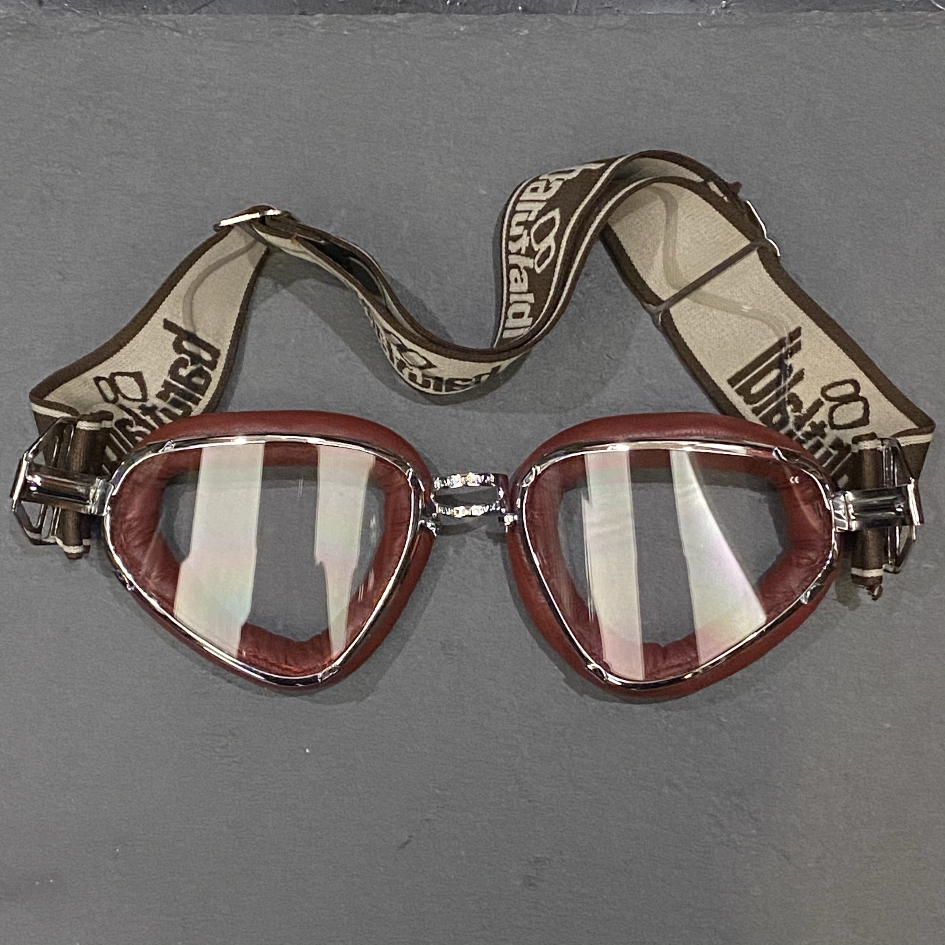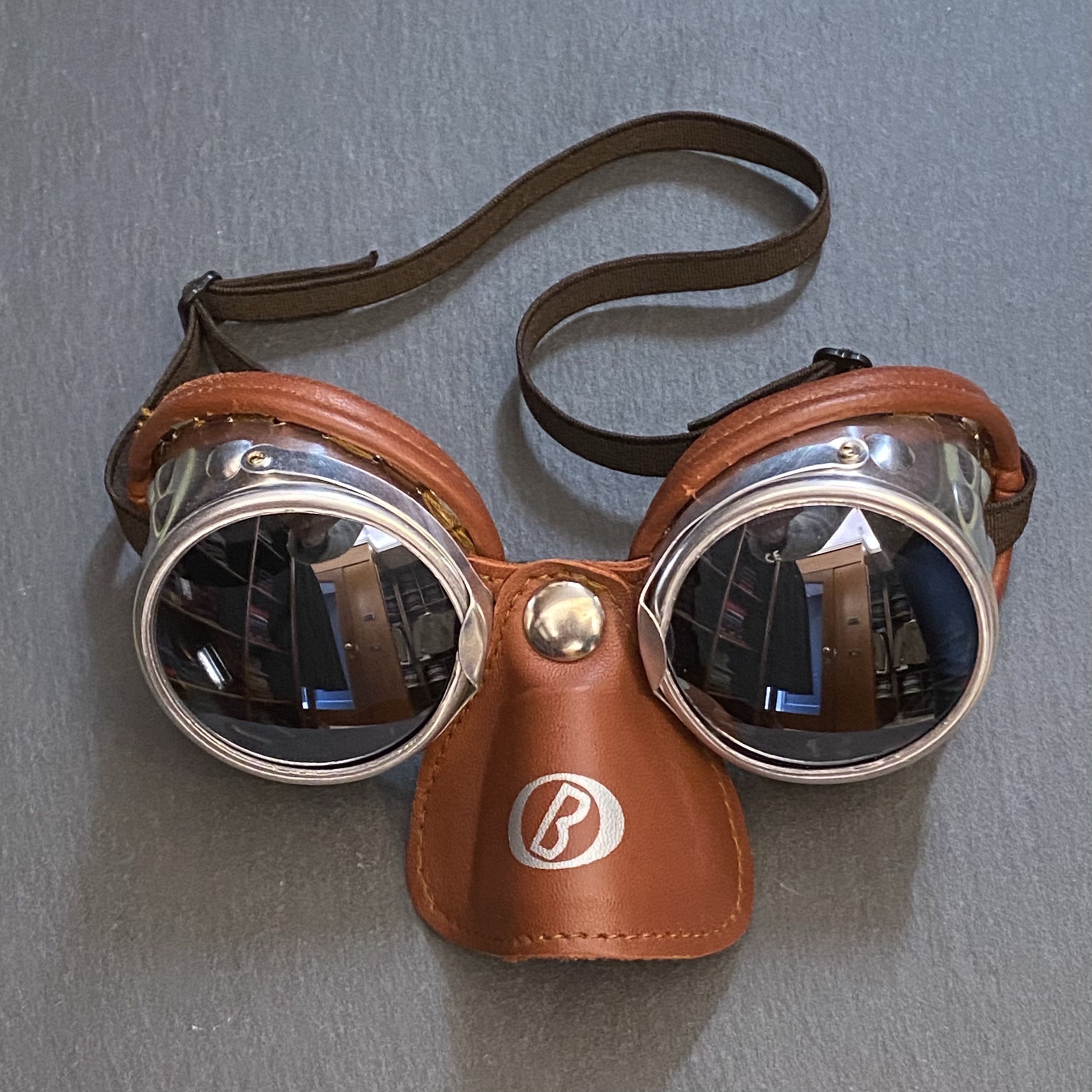 Occhiali vintage profilo in pelle col. marrone – copri naso staccabile