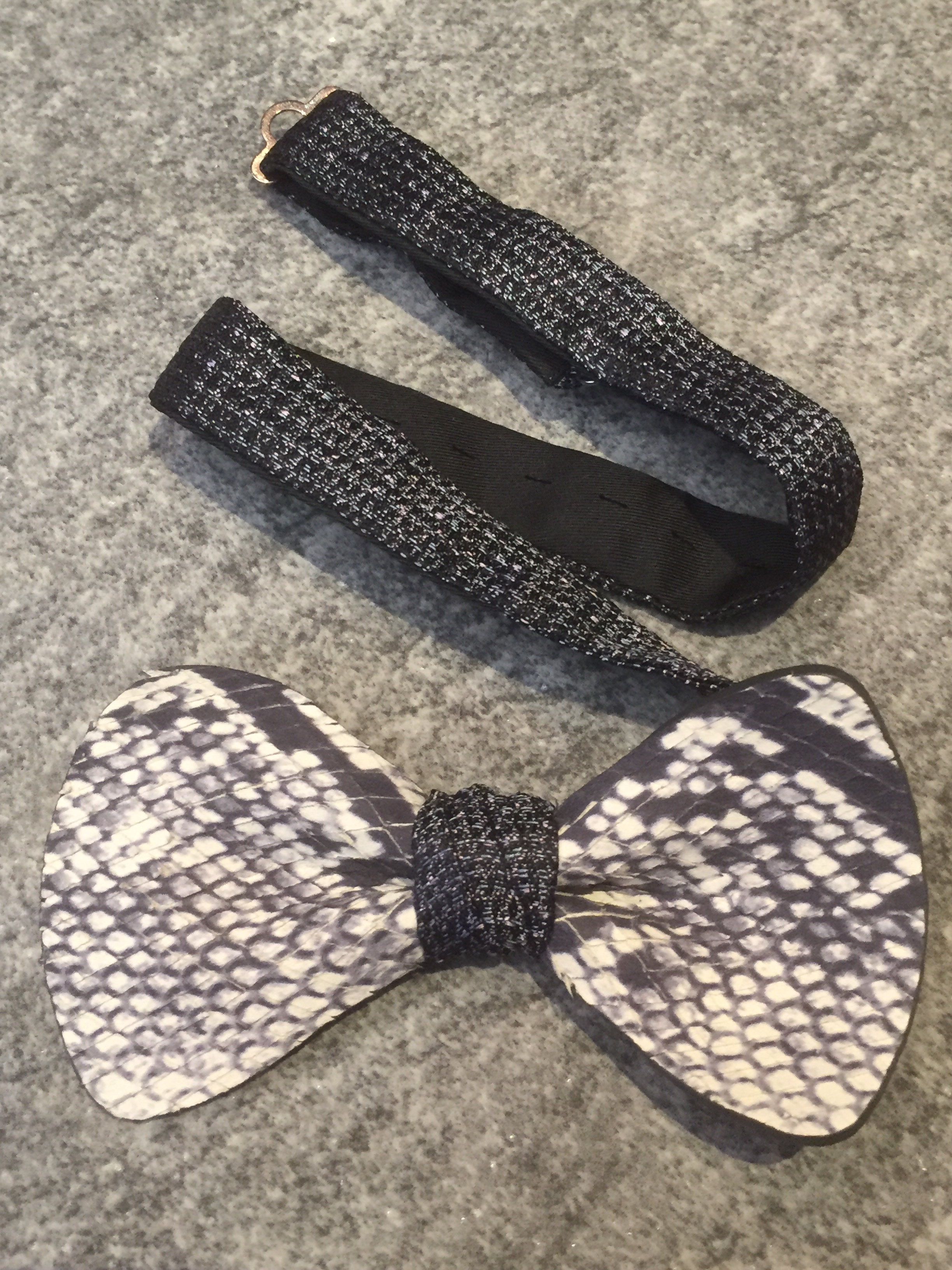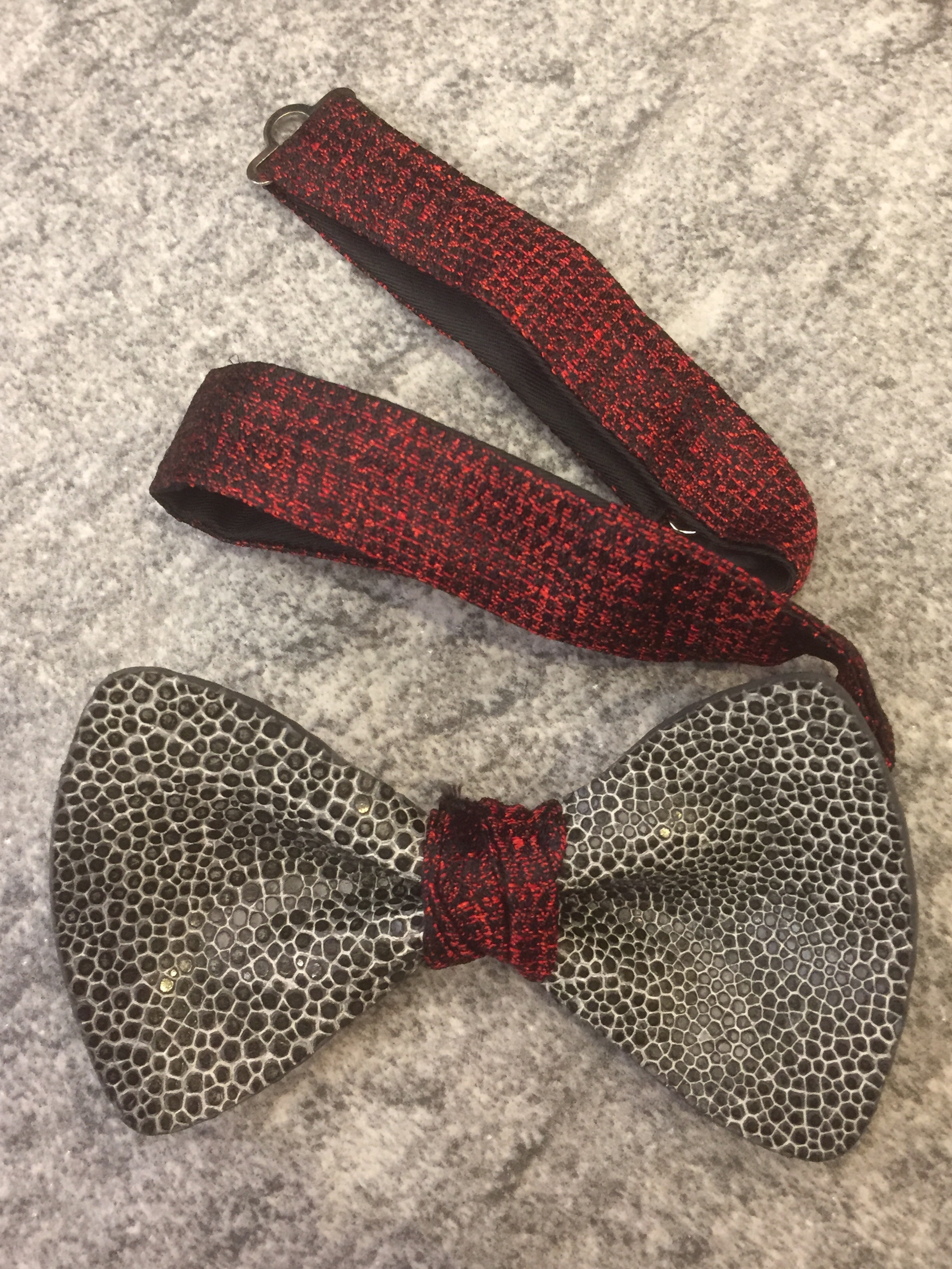 Papillon in pelle con cinturino in seta regolabile