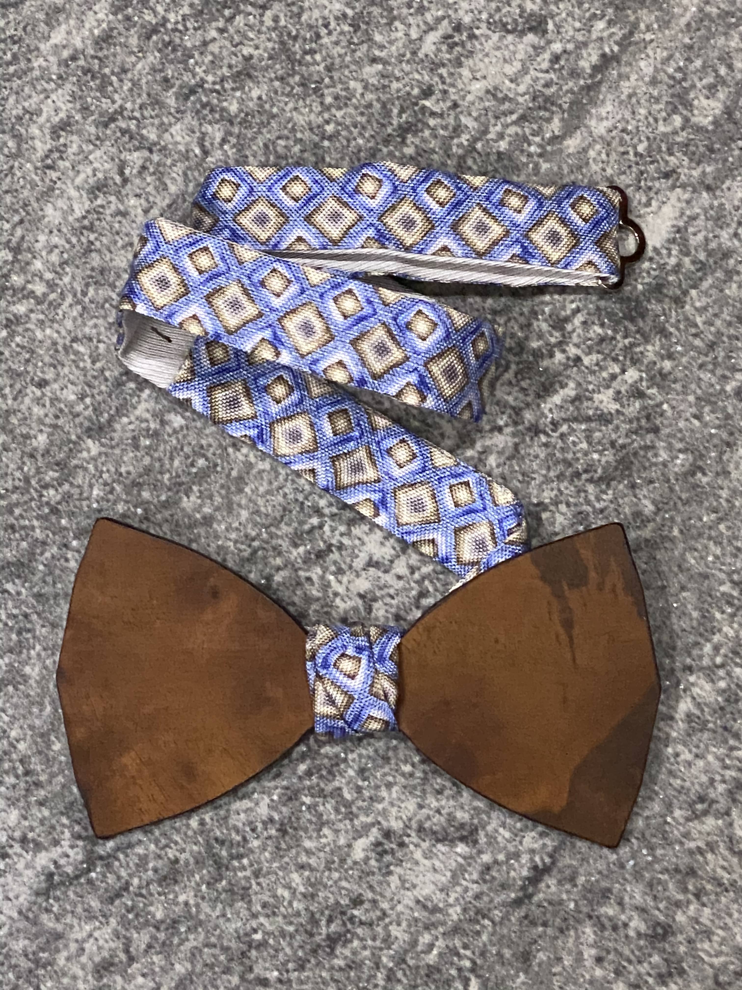 Papillon in legno con cinturino in seta regolabile
